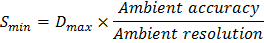 L'espace minimum entre l'échantillonnage de points de l'illuminance indirecte hémisphérique est la dimension maximale de la scène multipliée par la précision de l'ambiance divisée par la résolution de l'ambiance. En d'autres termes, pour les distances inférieures à ce minimum, le calcul aura toujours recours à l'interpolation, plutôt que de créer plus d'échantillons, indépendamment des erreurs possible avec cette interpolation. Ceci permet de supprimer un temps de calcul non nécessaire à résoudre des gradients d'illuminance pour une graduation négligeable. Cette distance donne l'échelle à laquelle la précision d'interpolation commence à se détériorer à partir du paramètre de précision d'ambiance. L'intervalle minimum Smin est :