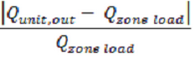 Q = UA × (Teau, moy - Tair, moy) Où q correspond à la chaleur transférée de l’eau à l’air, exprimée en watts ; Teau, moy indique la température moyenne de l’eau, exprimée en degrés Celsius ; Tair, moy correspond à la température moyenne de l’air, exprimée en degrés Celsius. Alternativement, il est possible d’utiliser la différence de température logarithmique moyenne. Débit Eau Maximal Débit volumique maximal de l’eau chaude, exprimé en m3/s. Tolérance de Convergence Tolérance de contrôle associée à la production du convecteur. La production du convecteur est ajustée en fonction de la demande de la zone. Pour définir une production spécifique pour le modèle, ce dernier doit faire l’objet d’une inversion numérique. La tolérance de convergence correspond à la tolérance d’erreur prévue pour l’arrêt de la procédure d’inversion numérique. Elle correspond à la fraction suivante :