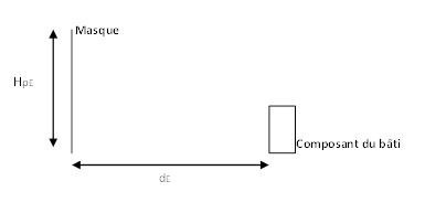 Exemple de bloc composant qui sera traduit en masque lointain azimutal pour les murs et fenêtres qui lui font face ou sur les cotés du bâtiment car le bloc dépasse en largeur le bâtiment et pourrait avoir une ombre projetée aussi sur les cotés (2e image à droite).