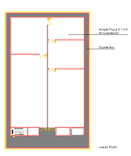 La périphérie est traitée en double flux et les réserves en simple flux avec un débit d'air neuf très faible. Je souhaite donc utiliser l'air de la zone périphérique avant un traitement finale par réserve.