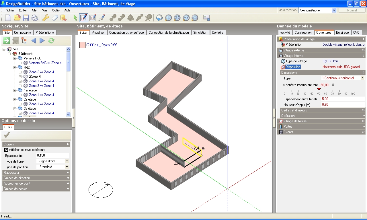 - DesignBuilder utilisant un véritable modeleur 3D, vous ne perdez